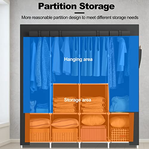 Home Bedroom Furniture LOEFME Canvas Wardrobe, Portable Wardrobe, Clothes Wardrobes for Bedroom, 165*45*160cm Fabric Wardrobes for Bedroom, 13mm Pipe Diameter Closet, W