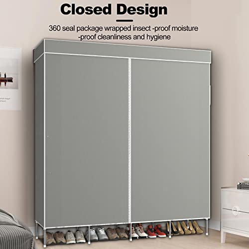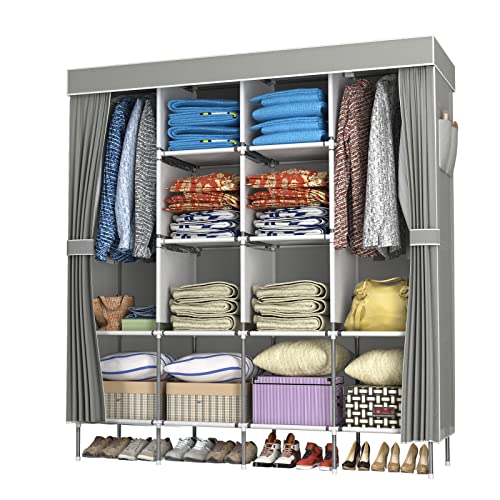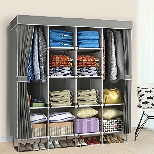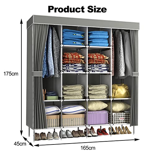 LOEFME Canvas Wardrobe, Portable Wardrobe, Clothes Wardrobes for Bedroom, 165*45*175cm Fabric Wardrobes for Bedroom, 16mm Pipe Diameter Closet, W