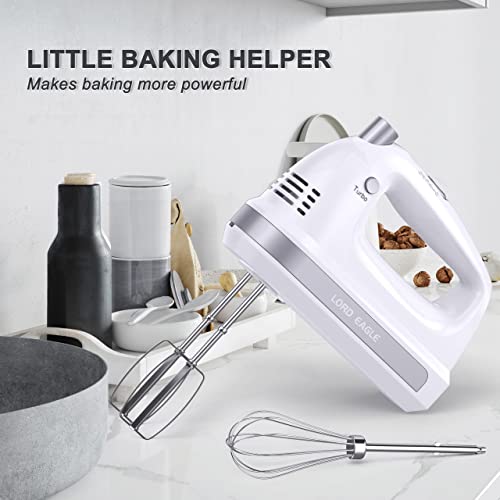Lord Eagle Electric Hand Mixer Mini, 300W Power Handheld Mixer Kitchen for 5-Speed Baking Cake Egg Cream Food Beaters Whisk, with Snap-On Storage