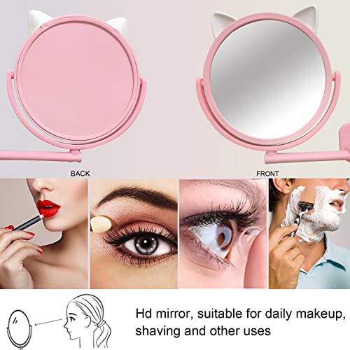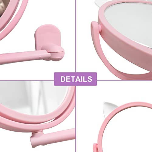 - 【2 in 1 Mirror】:Pink Mirror`s Overall frame (8.3") can fix in bedroom/bathroom, The mini compact body design enable you take it anywhere you go, perfect size for storage and travel