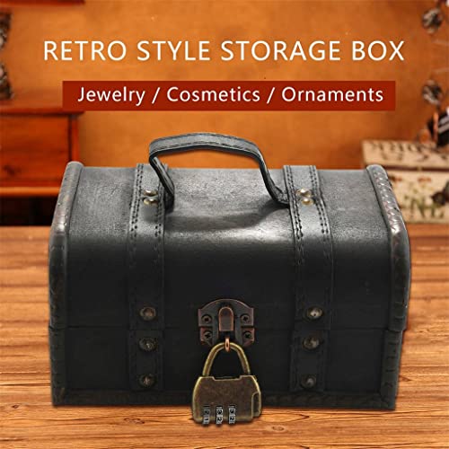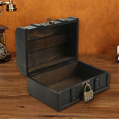 LSDJGDDE Retro Treasure Chest Vintage Wooden Storage Box Antique Style Organizer for Wardrobe Trinket Box Password