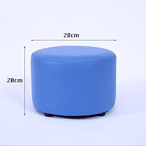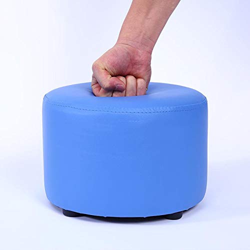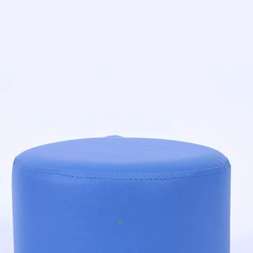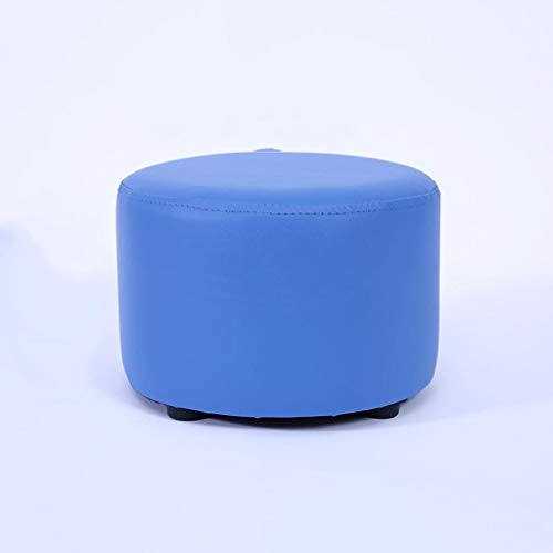 LUKEO Blue Footstool, Fashion Shoe Stool, Round Stool, Adult Sofa Stool, Solid Wood Stool, Leather Stool, Low Stool