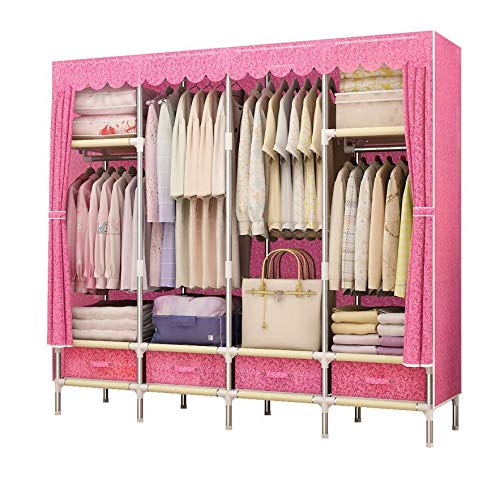 LUKEO Cloth Wardrobe Simple Economical Assembly Closet Dormitory Steel Frame Reinforced Thick Wardrobe