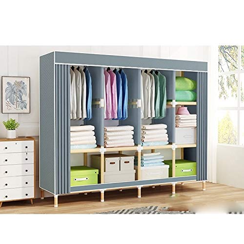 Home Bedroom Furniture LUKEO Detachable Wardrobe Steel Frame Thicken Bold Double Folding Full Hanging Fabric Simple Storage Economy Cloth Wardrobe