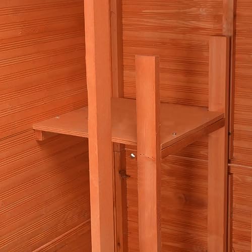 - Resistant to wear and water, the roof of the wooden shelter is made of waterproof polyester fabric. The garden shed is easy to assemble.