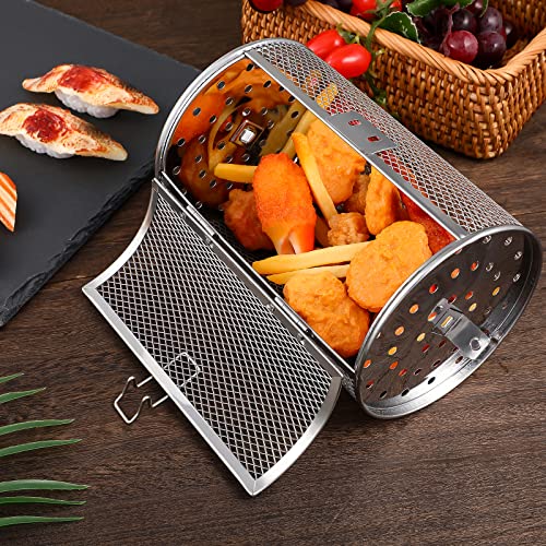 Product Description The Stainless Steel Rotisserie Grill Roaster can be used to dry or roast coffee beans, peanuts, melon seeds, chestnuts, walnuts, French fries, potato chips, fruits, dried flowers, vegetables and chicken and more. This rotisserie cage is suitable for all kinds of ovens and air fryers which with the rotating rod function. Grilled Cage Size The baking cage measures approximately 18 x 12 x 12 cm / 7 x 4.7 x 4.7 inches. Holds up to 900 grams of food. Reserved Square Hole The square hole in the middle allows you to insert the rotating shaft that comes with the oven and fits the hole axis of 0.6 cm. Please note: Our roasting cages do not come with a rotating shaft or screws. Rotated 360 degrees 360 degree rotating design, no more hand rotation, more even heating of the food, with better baking results. Cooking Various Cuisines With This Roaster Rotisserie Basket Paper Air Fryer Liners Air Fryer Silicone Pot Stainless Steel Rotisserie Basket Stainless Steel Rotisserie Basket Air Fryer Racks with Clip Package includes 100* Paper Air Fryer Liners + 1* Tong+1* Oil Brush 2 * Air Fryer Silicone Basket + 1 * Silicone Brush 1 * Rotating Basket (12×23cm) 2 * Rotating Basket (26×14cm) 3* Stainless Steel Rack + 1* Clip Suitable for Oven/ Air Fryer Oven/ Air Fryer Oven/ Air Fryer Oven/ Air Fryer Oven/ Air Fryer