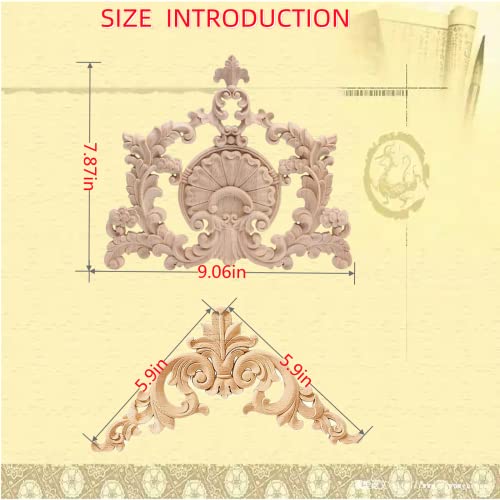 • Applicable size: Decorative corner appliques size is 15 x 15 cm/ 5.9 x 5.9 inches, size of thewood carvings decor is approx,23 x 20 cm/ 9.06 x 7.87inches,Decorative corner appliques can adorn the tops of your cupboards, closets, bookshelves, sofas, wood carvings can adorn your dining table centerpieces or side table decorations.