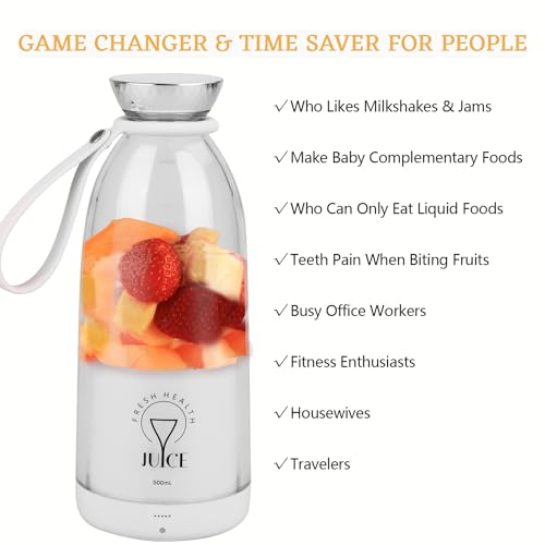 - 🍉【𝑯𝒆𝒂𝒍𝒕𝒉 & 𝑷𝒆𝒓𝒇𝒆𝒄𝒕 𝑮𝒊𝒇𝒕】For anyone who enjoy experimenting with different combinations of fruit and vegetables, it is amazing. You can make fast, delicious, low-cost, ultra-nutritious smoothies to your own taste without any additives. This portable blender is also suitable to send to your family and friends to help them get healthier fruit smoothie, protein shakes, baby food and other supplementary drinks.