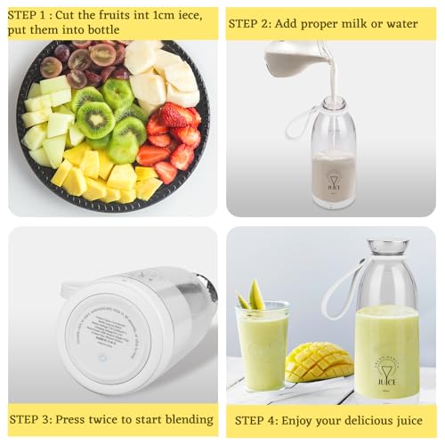 - 🍉【𝑬𝒂𝒔𝒚 & 𝑺𝒂𝒗𝒆 𝑻𝒊𝒎𝒆】It is easy to use. Cut the fruits or vegetables into 1cm small pieces, put them into the blender bottle to start blending. You can get a delicious drink within 1minute. It is also easy to clean, just detach the device, rinse the blades and cup, afterwards, put it back in the corner of the worktop, and that's it.
