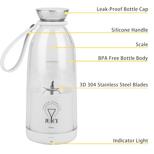Product Description Lydonberg Portable Blender- Help You Get a Healthy Lifestyle [ Wireless ] — Doesn't take up much space, like a regular cup on your table[ Sharp Blades ] — Easier to eat more fruits and vegetables[ 500 ML ] — Good size for single use[ Easy to Clean ] — Simple rinse of the blades under a tap[ Extra Base ]— Lightweight, saving washing up[ Suitable Power ] — Not noisy —— Lydonberg portable smoothie blender help you enjoy new taste food everyday this autumn. —— You can use to make your own taste food, like smoothie, milkshake, fresh juice, desserts, snacks, compote, silky smooth soup, etc. Quick & Painless——No Drag Out Large Blender & No More Endless Cleaning ——This mini blender is a good addition to kitchen, a compact food processor, help you making gourmet food with the least hassle. Healthier — Make fast, delicious, low-cost, ultra-nutritious smoothies / milkshakes / fresh juice to our own taste without any additivesEasy & Fast— Making a morning smoothie with minimal fuss and effortOn the Go — Making a smoothie / juice on the go (camping, gym, office, fishing, etc.)Great Gift — A practical gadgets to share with people around you Effective & Convenient Powerful & Effective 6 PCS 304 stainless steel bladesPowerful for crushing fruits and vegetables.One less excuse not to get some fruit, veg or protein in on busy days! Wireless & Compact Silicon handle, easy to carry.Replaceable bottom lid, more lightweight.Compact, can put into travel bag. Safe for Use The motor will not work: If the blender base is separated from the bottleIf the mark on the bottle is not aligned with indicator light Easy to Clean Rinse under the water. Or pour some water and a drop of cleaner into the bottle, press on/off button twice to start the automatic cleaning. Warm Reminder Right Size Content Cut the fruit into 1*1*1cm pieces, or the blade may get stuck. Right Volume The volume should not exceed 2/3 of container. Suggested volume: 400ml.Max for ice 300ml. Right Temperature Add liquid less than 60°C, or may cause damage or leakage. Right Cable Please use the original charging cable to charge, using other charging cables may cause poor contact. Other Attention Points Please note that the blender will stop working automatically after working for 30 seconds. If need a 2nd blending, just Double-Click the start key.Make sure the machine has enough power before blender. Before the first use, please charge the portable blender.Please recharge the machine at least once a month even if you do not use it for a long time.If it can not blade at the beginning, please tilt the bottle 45 degrees or shake a little to help it continue working. Specification Blade: 6PCS 304 Stainless SteelVolume: 500 ml /18OZBattery Capacity: 2400mAhCharging Time: 3 HoursWorking Times: 15 timesColor: Pink/WhiteWeight: 1.9 LBSize: 4x4x11”Product Weight: 741g Package Included 1* Portable Blender 1* User Manual 1* Bottle Bottom Lid 1* Type-C Charging Cable