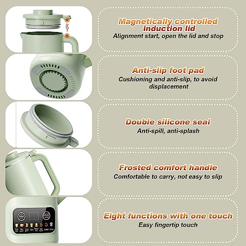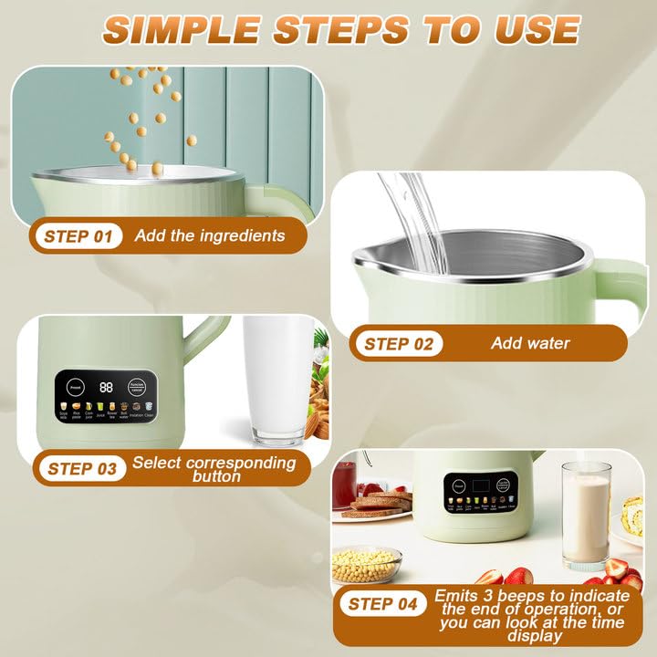 - 🥛【Auto Clean & Auto Timer】The automatic soymilk maker is designed with a cleaning function and a delay start function. Simply click the function button to clean the machine, making cleaning fast, easy and trouble-free, saving you money and time. With a delayed start of up to 12 hours, you can prepare your ingredients the night before and wake up to warm milk. You can also simply make soup with a blender, chop the veggies pour them in and blend to perfection, choose thick or smooth