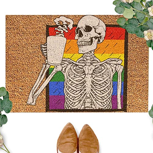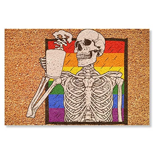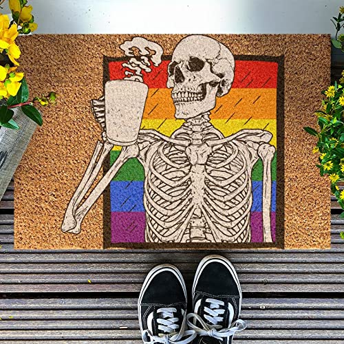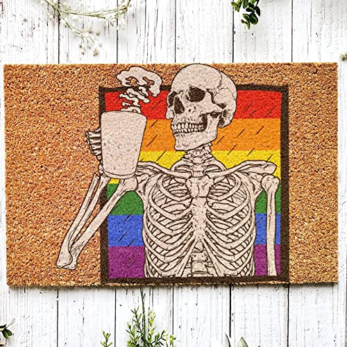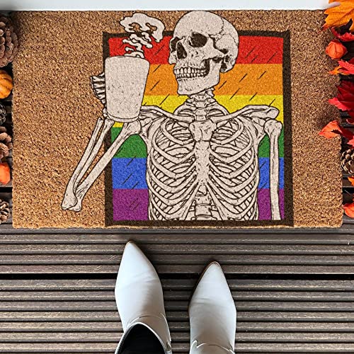 Madcolitote Coffee Drinking LGBT Skull Doormat Rainbow Pride Gay Lesbian Same Sex LGBTQ Mats Welcome Mat Doormat Front Doormat Farmhouse Kitchen