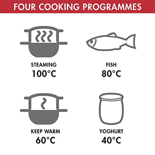 - VERSATILE: 4 programmes, for perfect results every time; Vegetables keep their crunch, meat and fish are cooked to perfection and homemade yoghurt is made easy