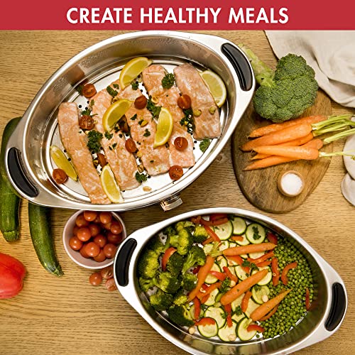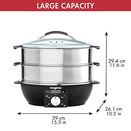 - LARGE CAPACITY: Thanks to 2 stainless steel 5;5L baskets and its glass lid, the steamer has a total maximum capacity of 12;2L