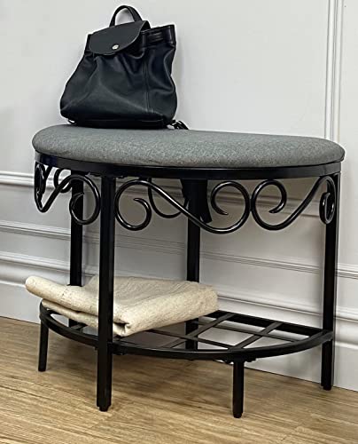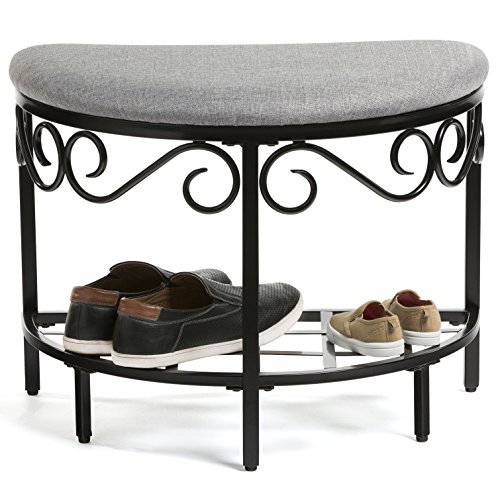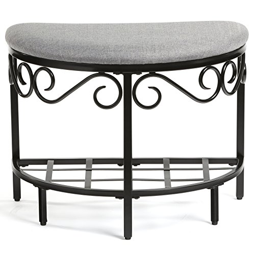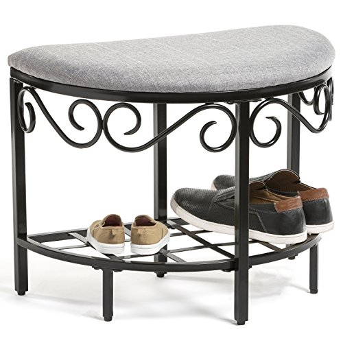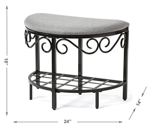 Home Hallway Furniture Mango Steam Berkeley Shoe Bench/Stool – Heather Grey – Texture Woven Fabric Top and Durable Steel Legs