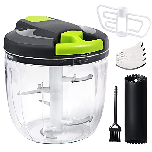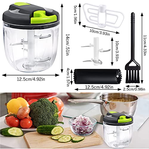 Manual Food Chopper, Multi-Function Manual Food Processors & Chopper/Mixer/Blender with Egg beater and brush, Garlic Press Vegetable Chopper Shre