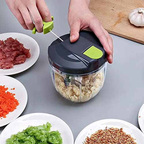 • √ Time and Space-saving: This quick hand chopper manual will help you chop vegetables, fruits and nuts. Put the food into the bowl, quickly pull the string once to chop the food 15 times without electricity. It saves a lot of time spent in kitchen. In terms of storage, it is easy to store. This manual garlic chopper is simply constructed, economy, compact and convenient. It can do all your kitchen work, but doesn't take up a lot of space.