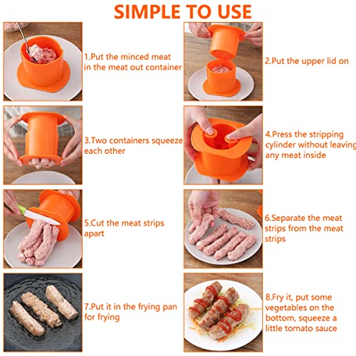 - 【Product Set】You will receive 2 different manual sausage machines. One is an orange hot dog machine, the size is 11.8x9.3X8 cm, you can make 7 sausages at the same time. There is also a white manual sausage stuffing machine, the size is 257x52 mm, the caliber is 20 mm, and there are many options for different styles.