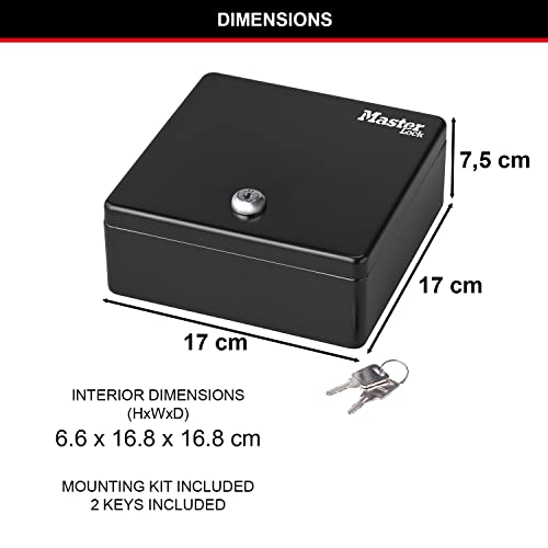 - SPECIFICATIONS: Exterior dimensions (HxWxD) 7.5 x 17 x 17 cm, interior dimensions 6.6 x 16.8 x 16.8 cm, 2 keys included, mounting hardware included
