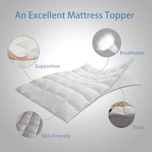 HomeBedroom Furniture Mattress Topper – Thick Mattress Topper Cover for Back Pain – Extra Firm Mattress Pad – Pillow Top Mattress Protector – Breathable Bed Topper – 8