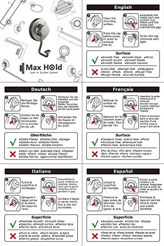 Product Description -------------------------------------------------------Professional Organization/-------------------------------------------- About MaxHold Suction System MaxHold is the market leading in suction cup of bathroom accessories and kitchen accessories. Based on patented technology, MaxHold products are innovative to use industrial rubber instead of PVC OR TBR. The rubber has features of water proof, oil resistance, cold and hot resistance. Modern design looks stunning with any bathroom & kitchen decor. Amazing Holding Power Modern design looks stunning with any bathroom & kitchen decor.Supported by patented suction system, each MaxHold suction cup could load not only 10lbs, not only 20lbs but more than 30lbs, which has been proved by the SGS test organization. MaxHold towel ring Packing List:1 suction cup1 stainless steel ring1 instructions booklet Dimensions: suction cup diameter - 7.3cm stainless steel ring diameter - 16cm Features: STRONG LOADING ABILITY - maximum loading is more than 30lbs.EASY INSTALLATION-no tools, no drilling, no screwing.NEVER RUST-made of SUS304 stainless steel and plating ABS plastic suction cup.REMOVABLE-reuse and no surface damage. Caution: Suction cup works best on smooth and non-porous surface -SMOOTH glazed tile / glass /steel/mirror/PVC surface/painting surface.Doesn't work on porous surfaces-concave(convex)/cambered/porous tile/rustic tile/mosaic tile/travertine tile/porous marble/concrete and lime wall surface. Installation: Clean - clean the mounting surface thoroughly.Press - press the flat rubber base to exhaust the internal air lightly.Position - position the metal part with the suction cup.Twist - twist the knob clockwise to lock until fully tight. Simple stainless steel towel ring is rustproof and waterproof. It is perfect to keep your washbasin clean and organized. Modern silver design looks stunning with any bathroom & kitchen decor. No drilling suction cup has no damage to your wall, and it is removable and reusable.