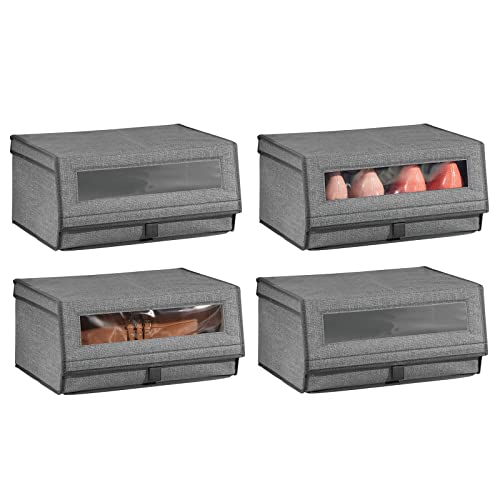 - CLEVER DESIGN: These stackable shoe boxes feature a hinged lid, which is secured by two fastening strips and a clear window. These features make it easy to view and access the contents of the box