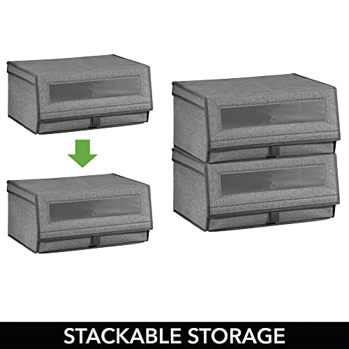 - CLEVER DESIGN: This footwear storage bin features a hinged lid, which is secured by two fastening strips, and a clear window. These features make it easy to view and access the contents of the box.