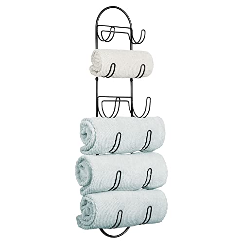 - LOTS OF STORAGE: The wall mounted towel rack has six tiers of storage to keep all towels in one place.