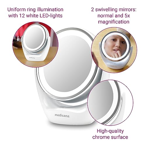 - High quality: The Medisana CM 835 2-in-1 makeup mirror scores points thanks to its modern, chic design and high-quality workmanship.