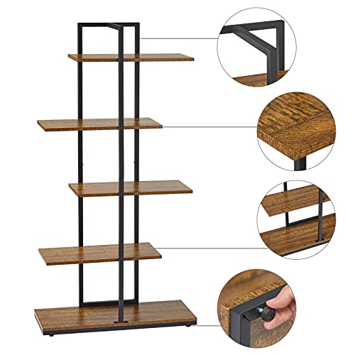 - 【Storage Space】- This charming bookcase features 5 tiers of open staggered shelving, providing ample capacity and a small footprint area. It can provide plenty of storage and display space for books, knick-knacks, family photos, decorative items; separated open bookcases enables you to easily reach the book you need.