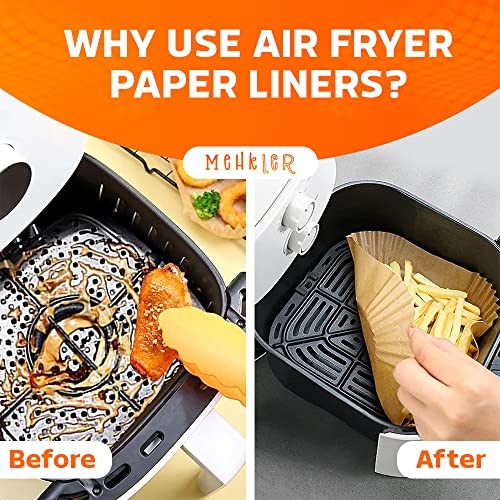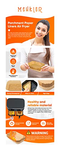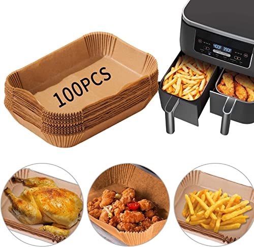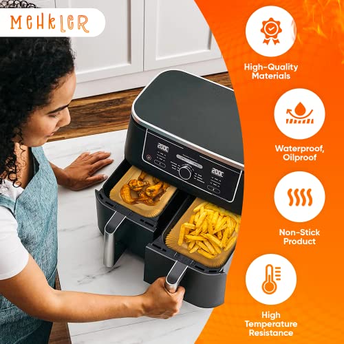 MEHKLER Air Fryer Liners for Ninja Dual, 100PCS 8.7 Inch Disposable Air Fryer Parchment Paper Liner Rectangle, (7.6L & 9.6L), Oil and Water Proof