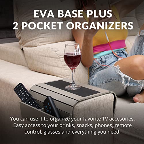 - Lounge with Ease - With our couch arm rest tray, you can relax on your sofa while having everything you need within your reach. This arm table has a water-resistant Eva base and 2 pocket organizers for easy access to your snacks, gadgets, remote control, and more.