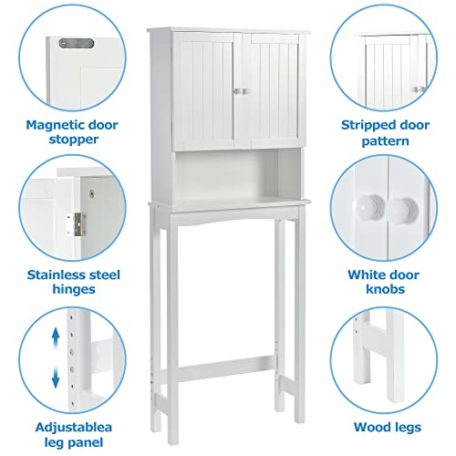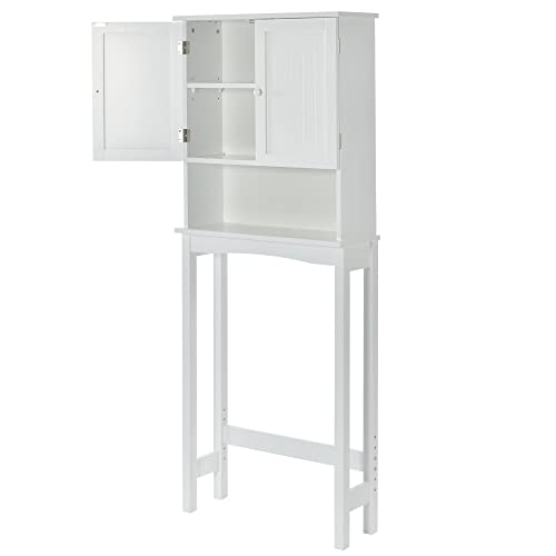 Merax Over-The- Toilet Storage, Freestanding Bathroom Cabinet with Two Doors and Adjustable Shelf, White, Engineered Wood