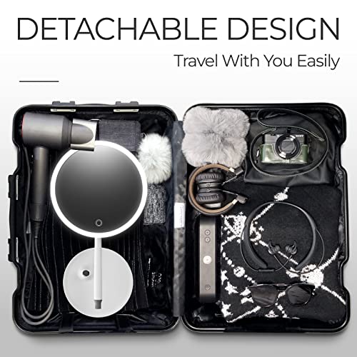 - More Portable, More Convenient: This vanity mirror has a detachable design, which means you can easily put it in your suitcase and take it with you anywhere! The silicone anti-slip bottom pad ensures stability during use. With 30 up and down angle adjustment to meet all makeup needs, you don't need an exaggerated 360 .Meanwhile, the MINE MIRS vanity mirror features an efficient Type-C interface.All of these are designed to provide you with a more convenient and efficient makeup experience.