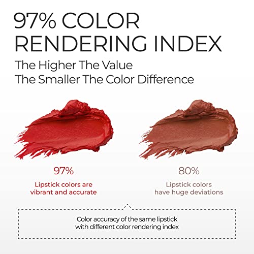 - Illuminate Your Beauty: MINE MIRS P3 is equipped with 58 high color rendering LED lights that have 2000lux high definition, and have up to 97% daylight similarity. 3 color lights provide cool, natural, and warm light. The makeup mirror also supports brightness adjustment, the light is soft and can light up all corners of your face. Let your beauty nowhere to hide.