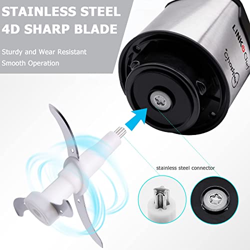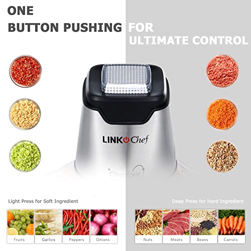 • 400W POWERFUL CHOPPER - LINKChef mini chopper equipped with 400W pure copper motor allows you chopping, blending, pureeing, mixing and mincing a variety of ingredients in seconds. It is not only convenient for preparing sauces, salads and baby food, but can also be used as a meat grinder to help you prepare minced meat and crushing ice.