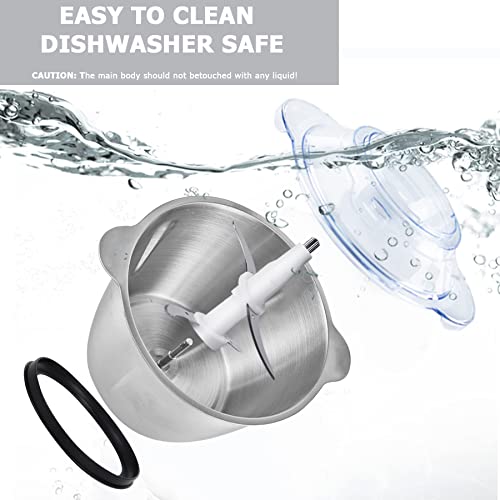 • SOLID STAINLESS STEEL BOWL - This chopper electric is equipped with a 1.2L bowl, perfect capacity for families, polished stainless steel finish, build to resist daily scratches, bumps, corrosions and tarnishing. Stainless steel bowl with non-slip rubber mat on the bottom, ensure the stability of the mini food chopper during use. (All accessories are dishwasher safe)