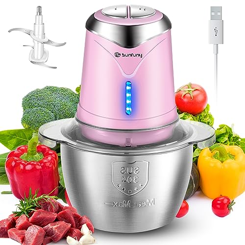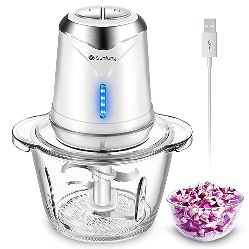 - 【Idea Gift】 Sunfuny meat chopper slicer kit includes a usb cable, motor, bowl lid, chopping blade set, glass bowl, scraper, silicone ring mat and user manual. We offer an 1 year warranty on the kitchen mincer grater, contact us anytime if you have any problems.