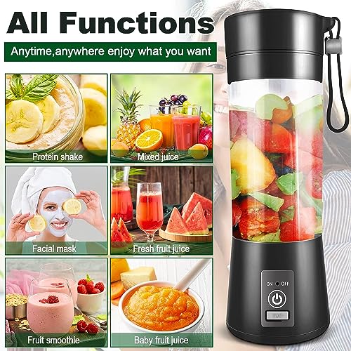 - 【𝐏𝐨𝐰𝐞𝐫𝐟𝐮𝐥 𝐅𝐮𝐧𝐜𝐭𝐢𝐨𝐧】This portable blender comes with 6 very sharp stainless steel blades that effortlessly crush fruits and vegetables into delicious smoothies. It will quickly create delicious smoothies, milkshakes and fresh juices for you. Improve the quality of life for you.