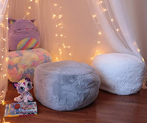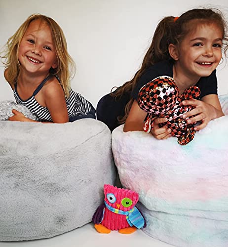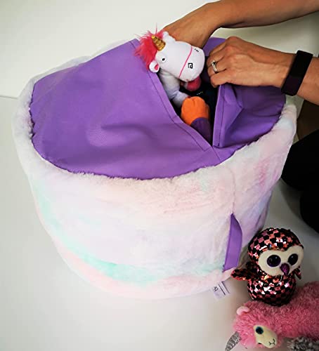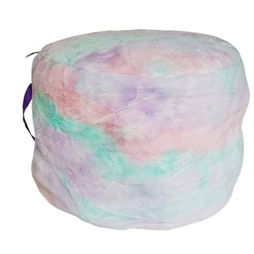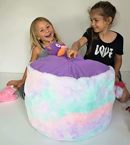 - ★ This roomy soft RAINBOW furry pouf perfectly stores soft toys, throw pillows, blankets, favorite dress up costumes, seasonal clothing, and at the same time brightens any room making it trendy and chick. HOLDS 120 small STUFFED ANIMALS – Approximately 24 inches in diameter when full