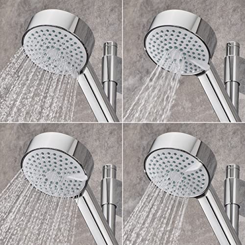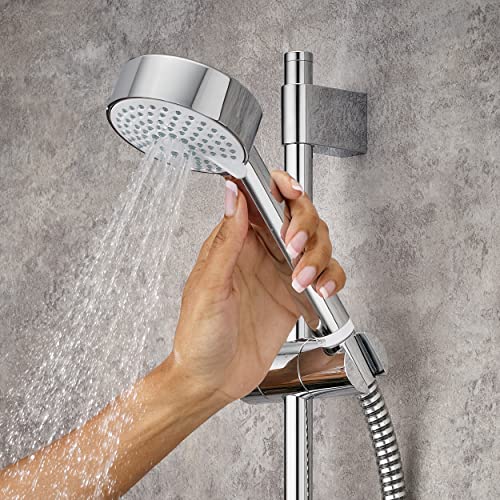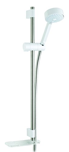 - 4 spray showerhead with rub-clean nozzles for easy lime scale removal and soap dish with integrated hose retaining ring/shower gel hook