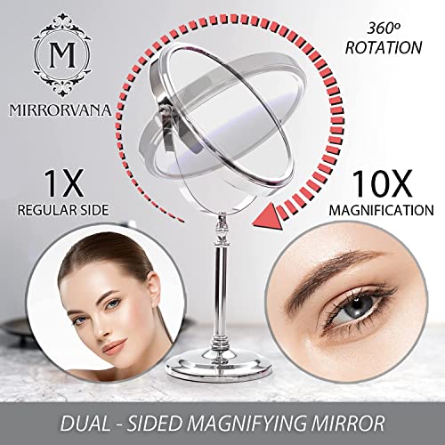 - ★ STRONG 10X MAGNIFICATION ★ See more than you ever thought possible with your strong 10x magnifying mirror. See every single detail even without your glasses no matter whether you're doing your makeup, lashes, eyebrows, plucking or tweezing. Flip back to the 1X side when you don't need magnification.