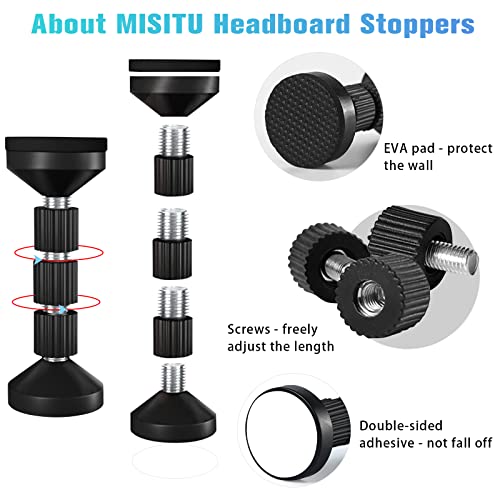 Product Description Details of the headboard stopper 1* EVA pad: Adding thickness of the EVA to protect the wall, reduce shaking or noise. 1* Screw nut 3* Screws for adjusting: you can remove or rotate the screws to adjust the length of the heandboard stopper. 1* Screw nut 1* Strong double-sided adhesive: not easy to fall off and shift from bed.
