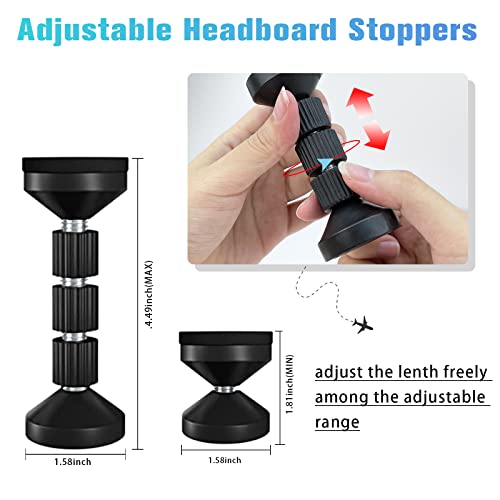 - 【Adjustable Headboard Stoppers】While doing the installment, adjust the screws to make sure the headboard stoppers fix the distance between bed and wall. The length of each bed head holder can be adjusted freely by adjusting screws’ numbers and rotating the screws.