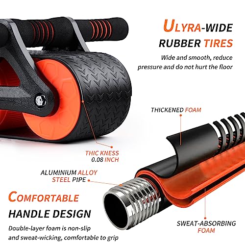 - Automatic Rebound Design: This ab wheel roller features an innovative auto-rebound design. It is equipped with high-performance rubber wheels that can automatically rebound and roll back to the starting position. This allows users to smoothly transition between reps without breaking form or needing to manually roll the wheel back after each rep.