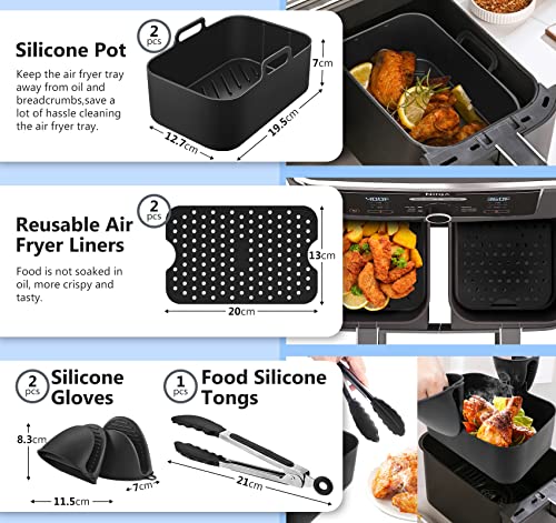 - Reusable and Safety: The ninja liners silicone pot made with 100% food safe grade silicone,replacement for disposable air fryer paper liner ,non-stick, no odor, with good heat resistance (240° to -40°F). It can make your life healthier and more environmentally friendly .you can enjoy your freshly baked and delicious food with confidence. Size : 7.67*5*2.75 inches, fit for 8QT double basket air fryer.