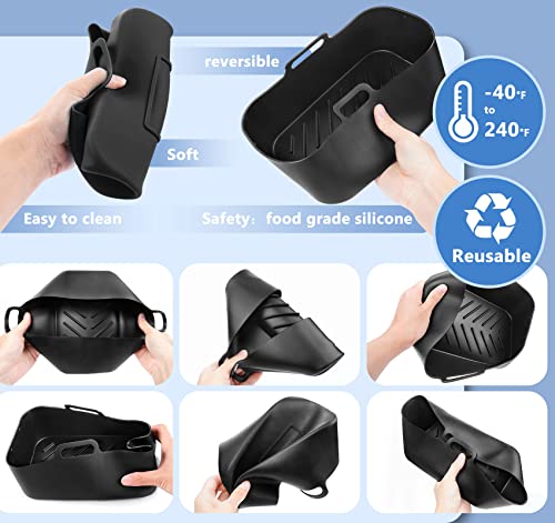 - Air fryer accessories Set: We have two silicone air fryer liner and two silicone baskets. They can also be used separately according to personal needs, but put the air fryer lining into the silicone pots use together to avoid the food being soaked in oil, which will make your food more crisp and delicious!
