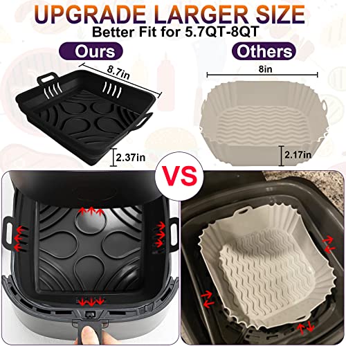 • [Upgrade Large 22CM Air fryer Silicone Liners]: We upgraded the size to Top 22CM, bottom 18.3 CM, high 6CM, which can make the most out of your air fryer's cooking space, and cook more food at a time. It can fit for Cosori 5.5L, 6.4L, Uten 5.5L, and most 5.5L-7.5L large air fryer! 2 pieces airfryer silicone liner can flexibly match the use of different food kinds, portions, and cooking methods.