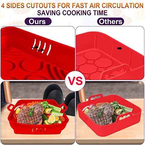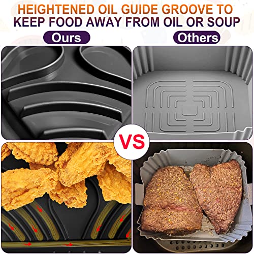 • [Oil Draining Design]: The air fryer pads have specially designed raised lines, and make it higher on the center and lower on the rim, so that the oil flow naturally and gather to the edge. In addition, we increased many small holes on all sides of the silicone pot to improve the air circulation of your food, which cooks delicious crisp food and saves your cooking time for heating foods.