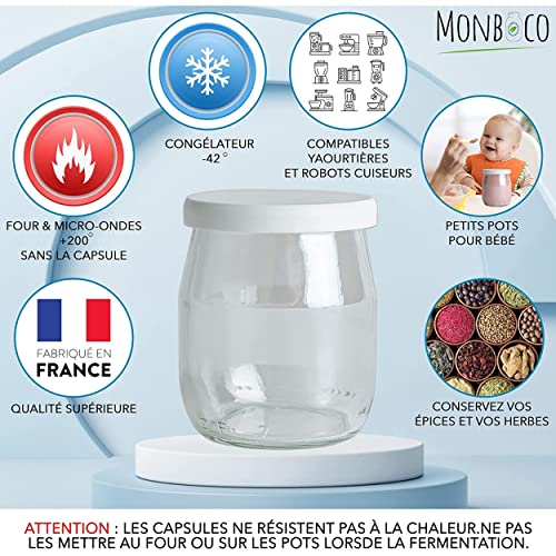 Home Small Appliances Monboco |12 Glass Yogurt Jars Set with Hermetic Lid | for Yogurt Maker & Robotic Cookers (thermomix, Mr Cuisine, Cookeo, etc) | Made in France |